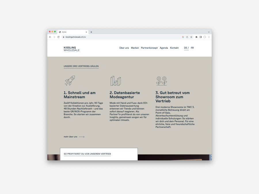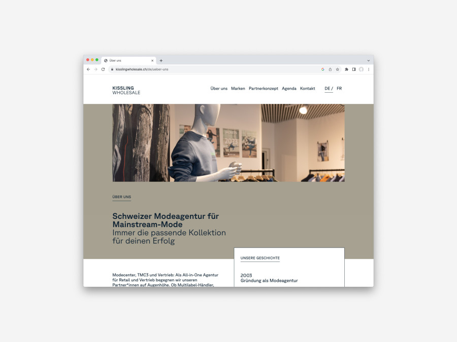Zweisprachige Website für die Modeagentur Kissling Wholesale.